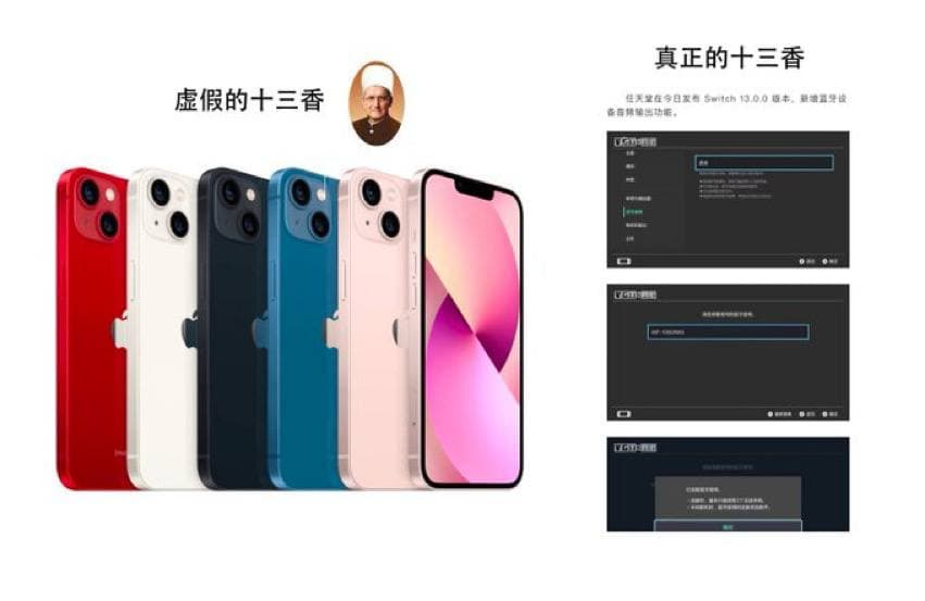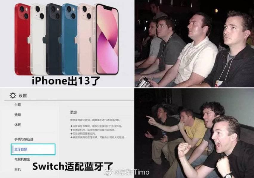 就在同一天,没有重大更新的 iPhone 13 发布,这导致广大玩家们制作了梗图来调侃苹果和任天堂。