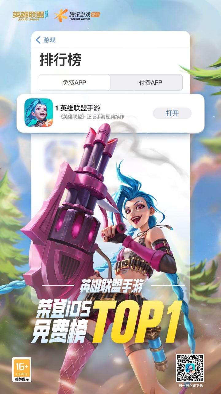 9 月 15 日的公测放了鸽子之后,《英雄联盟手游》于 10 月 8 日再度开启公测,被放鸽子的玩家因此也获得了丰厚的补偿——送皮肤、送英雄等福利活动不仅让玩家的态度从「狗都不玩」转变到「真香」,还让游戏登顶了 iOS 免费榜。